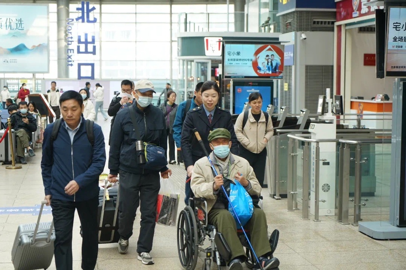 同时,紧盯现场作业组织,加强检票口、电扶梯、站台等关键部位宣传引导,联动地方交通,强化地铁、公交、出租车和网约车高峰时期换乘接驳。升级优化京铁爱心服务区设施,完善儿童娱乐区“成长天地”,全力提升服务标准,为老幼病残孕等重点旅客提供“一帮到底”的免费服务,实现爱心引导、爱心购票、爱心通道、爱心候车。车站还组织党员骨干、青年力量成立突击队,在进站口、快速进站厅等关键处所进行宣传疏导、解答问询、提供帮扶,全面提升旅客出行体验,引导旅客文明出行,共同维护良好乘车环境。