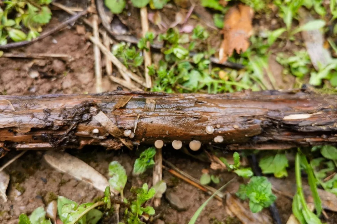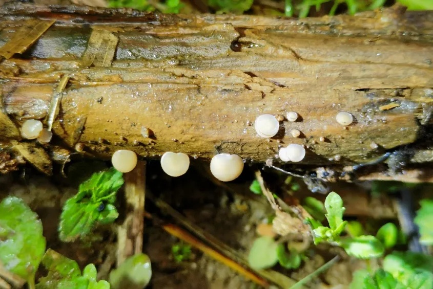 木生假雨盘菌是一种小型子囊真菌,幼时近球形至球形、盘状。颜色呈柔和的奶油色、粉白色或者浅灰色,外表还覆盖着一层细绒毛。木生假雨盘菌的子囊呈圆柱形,在基部逐渐变细,子囊盘特征较为明显,直径在1-5毫米之间,它们的形态从无柄到几乎无柄,一般生长在腐烂的木头上。