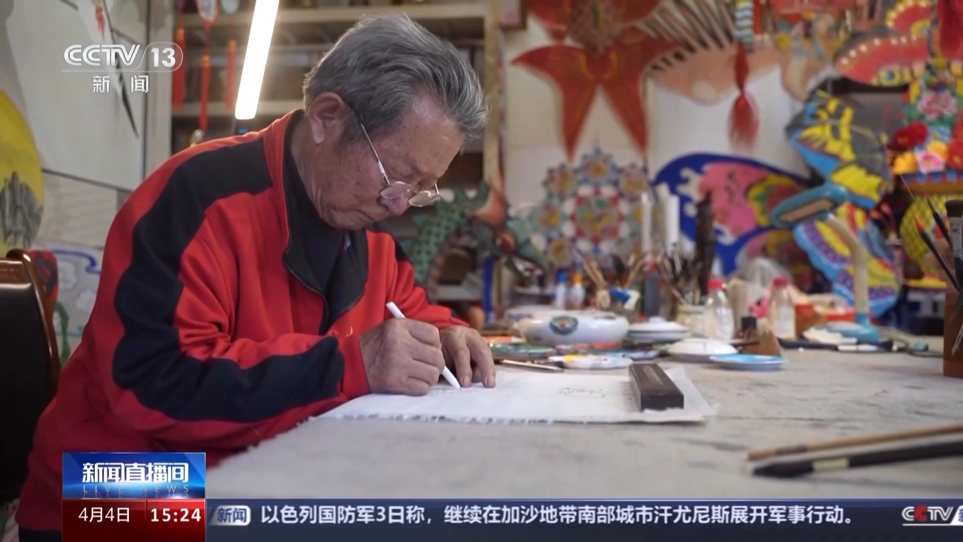 75岁的潍坊风筝技艺国家级非遗传承人张效东,正在为今年即将举办的第41届风筝会精心制作一件五龙沙燕风筝。从40年前为第一届风筝会扎制参赛风筝至今,张效东每年都会带作品参赛。
