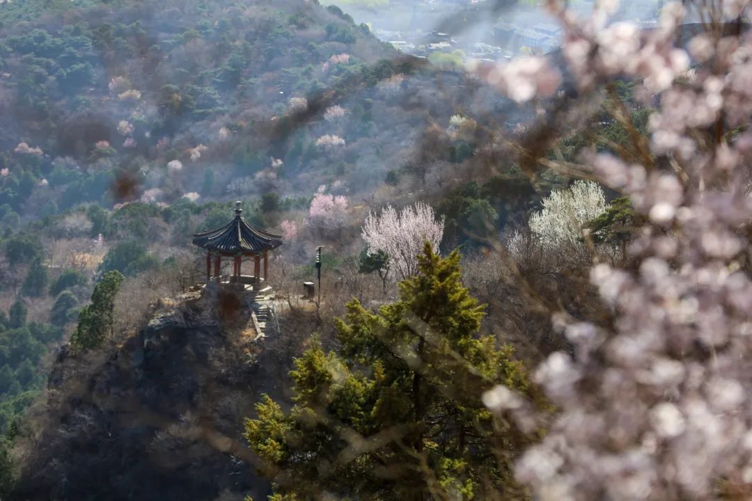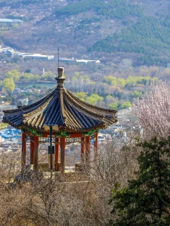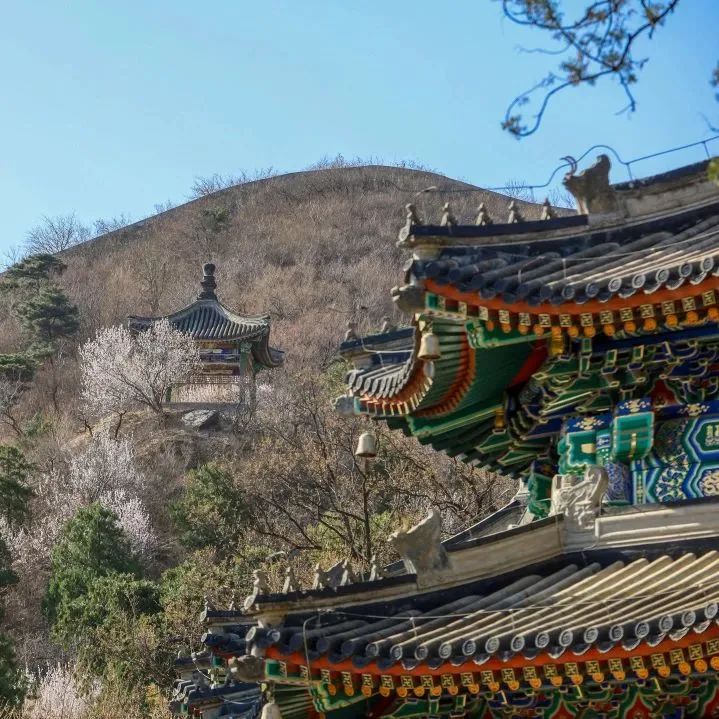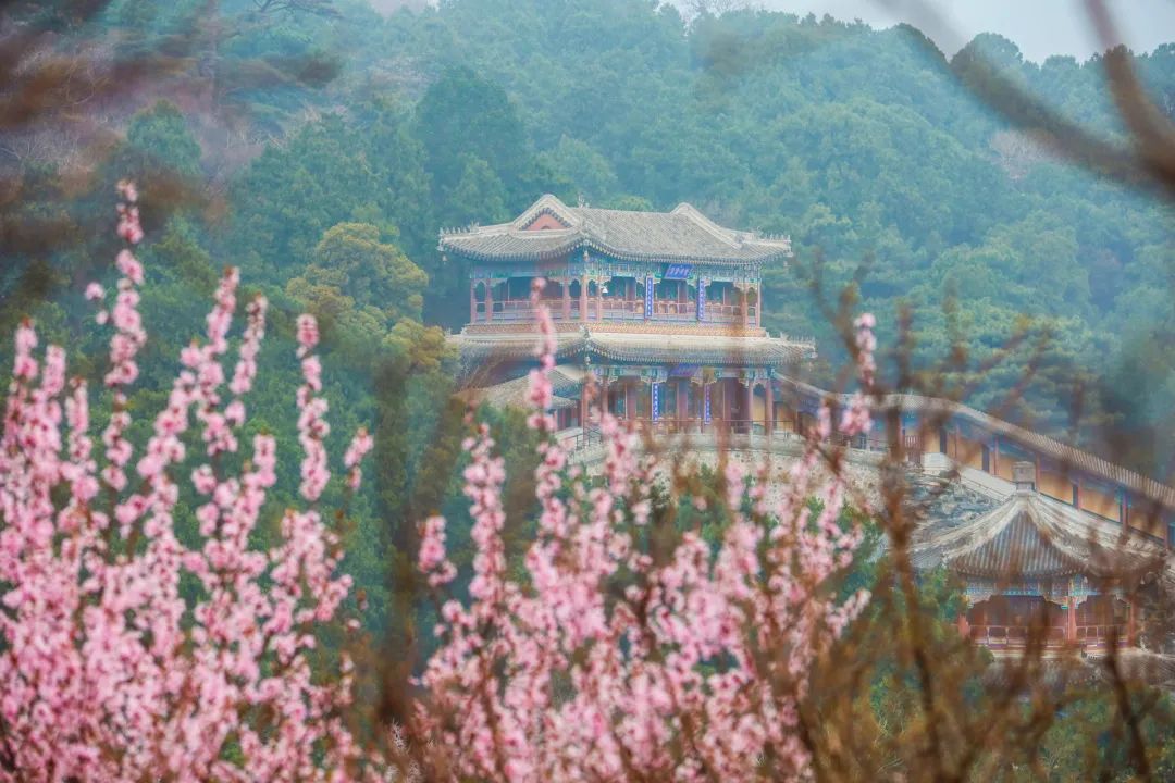 在这条路线上,游客可欣赏乾隆御制诗中写到的“绯桃与绛杏”,翠微亭、森玉笏、古御道山神庙、香炉峰等处的山桃与山杏红粉菲菲、沾晨带露,“秀而不媚”映衬在亭的周围。