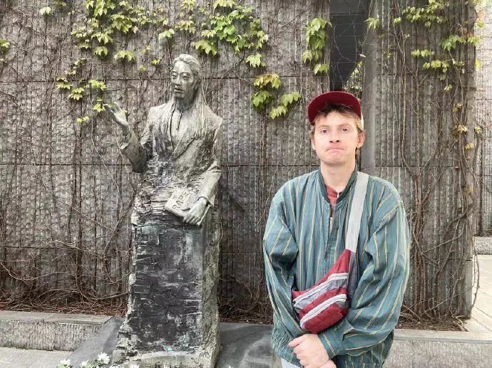 新西兰小伙Norman,一个月前刚刚来到中国。他在张纯如女士的铜像前驻足并拍下照片。他说:“我读过张纯如女士的书,在书中我了解到了南京大屠杀的历史,有许多外国人通过她的书籍第一次知道了这些可怕的事情,她还走访了许多的幸存者老人,让我们了解到了幸存者口中的历史。我想没有人会喜欢战争,和平对于每个人来说都是珍贵的。”