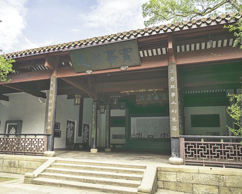 1917年起,这块匾额作为校训高悬于此,引导学生从实际出发追求真理。青年毛泽东曾寓居书院半学斋,推窗就能看到这四个大字。此后的革命实践中,“实事求是”的内涵得到不断的丰富和发展。