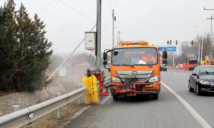 “3月初,我们针对密西路的路肩、边坡及边沟进行标准化整修,在标准化整修的基础上,同时增加了清扫车和洒水车的作业频次,定期对路面去除尘土和杂物,保持路面整洁干净,提升空气质量。”北京路桥瑞通养护有限公司第四公路工程处养护管理部职工高跃说道。