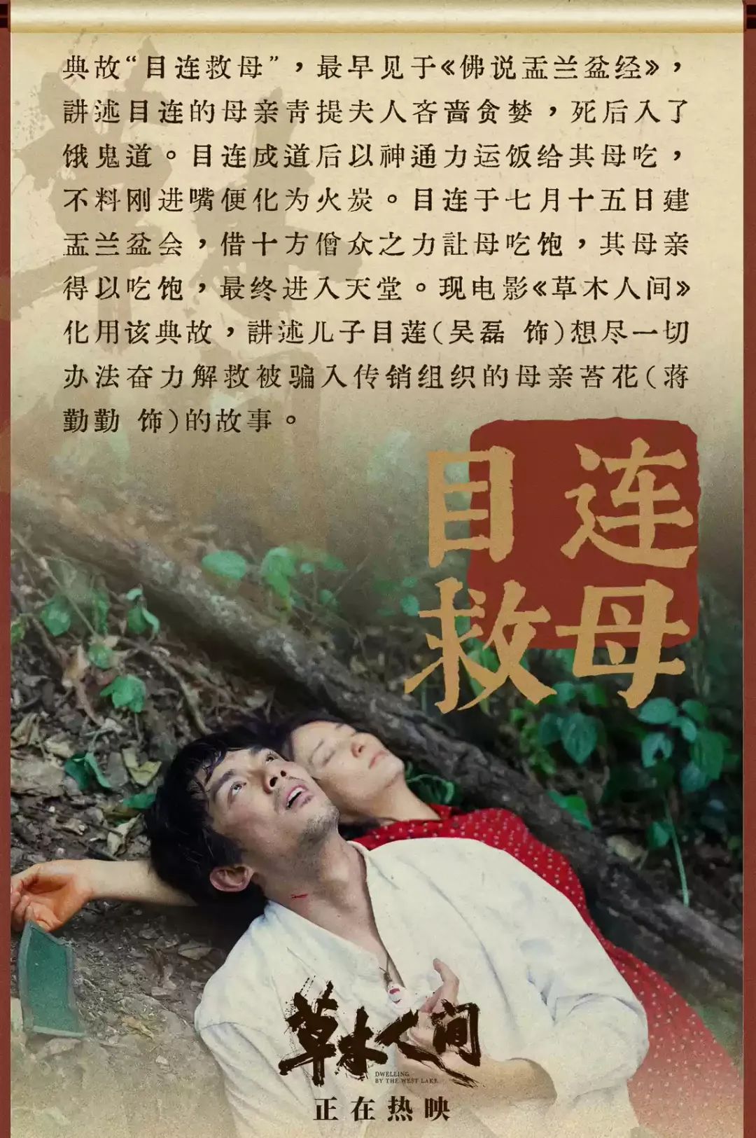 苔花早已对丈夫死心,但架不住儿子目莲(吴磊饰)急切的“寻父”心情。苔花活得压抑,但好在跟卖茶叶的钱大师(陈建斌饰)心心相印,也曾试探着征求儿子的意见,能否同意自己跟钱大师过?结果儿子坚决反对。再加上钱大师的母亲打上门来,让她在村里无法立足,于是她只好选择去杭州跟儿子一起生活和工作。