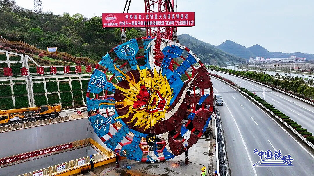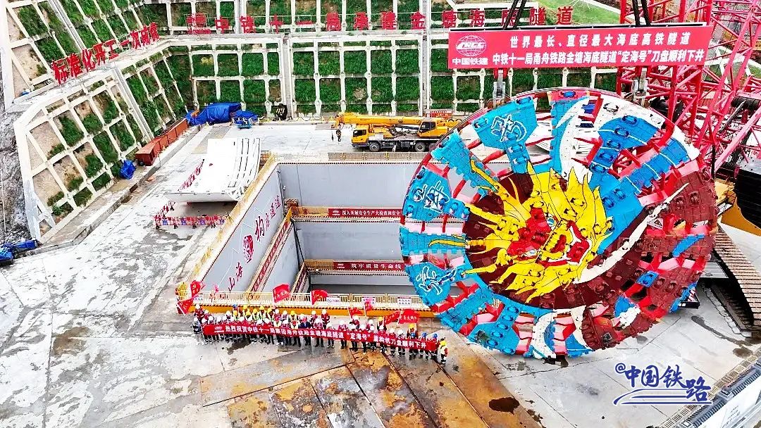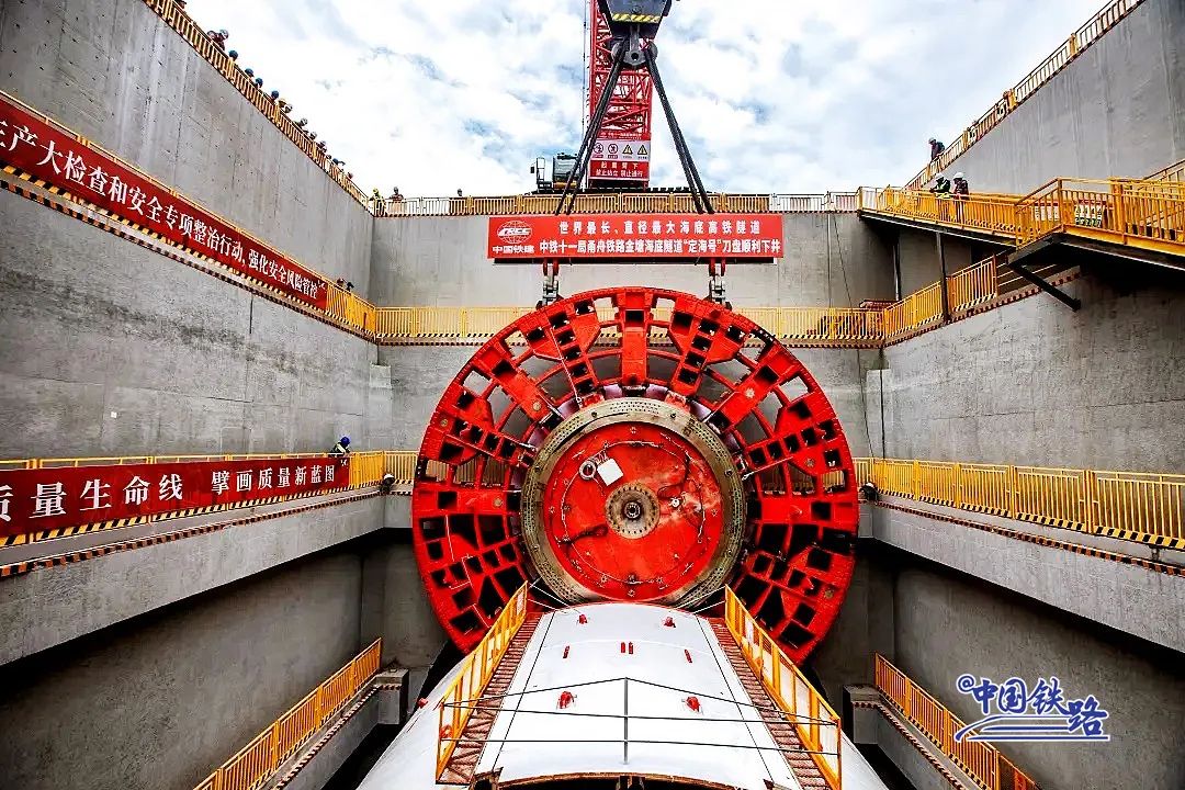 “定海号”盾构机从舟山市金塘岛金塘工作井始发,由东向西掘进6270米穿越金塘海底水域,与由西向东掘进的“甬舟号”盾构机会师。刀盘涂装“瑞龙”图案的“甬舟号”盾构机和“定海号”可谓是一对“孪生兄弟”,总装达到世界一流水平。届时,“东海龙王”将与“瑞龙”在海底深处相遇。