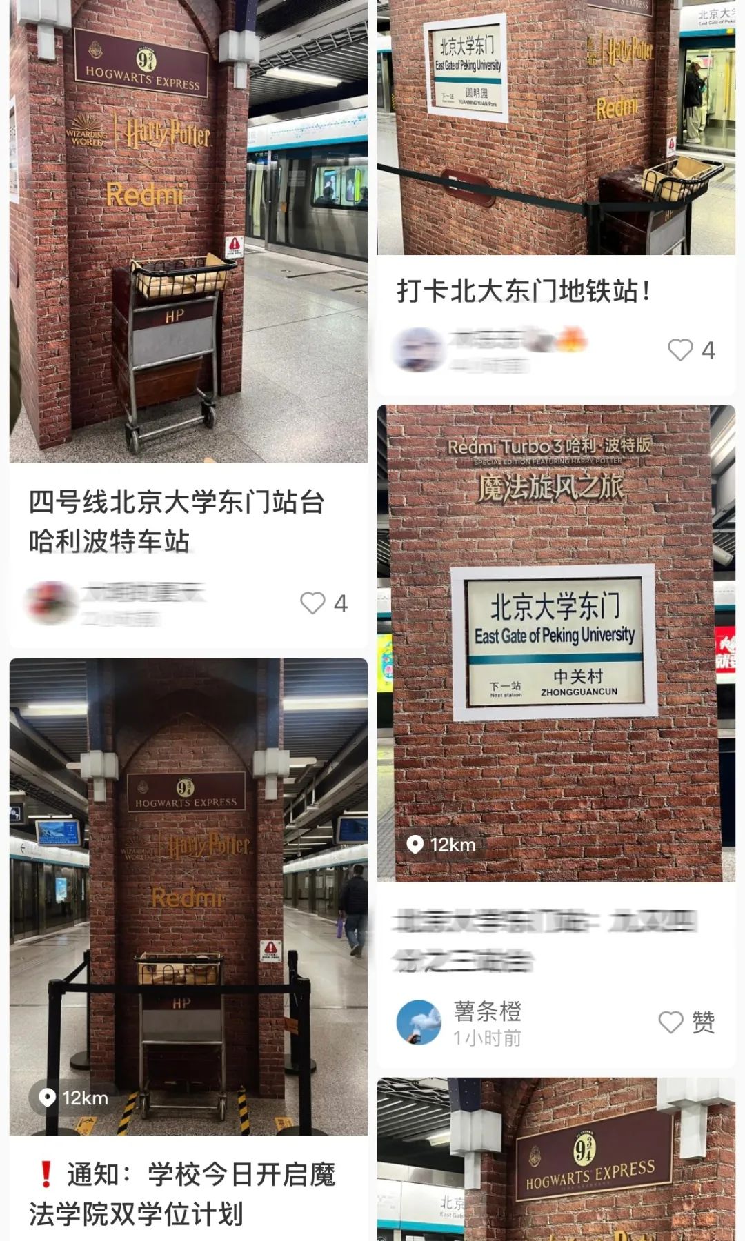 近日,北京地铁北京大学东门站内出现了一处引人注目的新装饰——“9¾站台”,这一设计来源于电影《哈利·波特》中的经典场景。这个装饰以红砖墙和小拱门为特色,还摆放了复古皮箱等道具,营造出一种魔法世界的复古氛围,吸引了许多年轻人前来拍照留念。