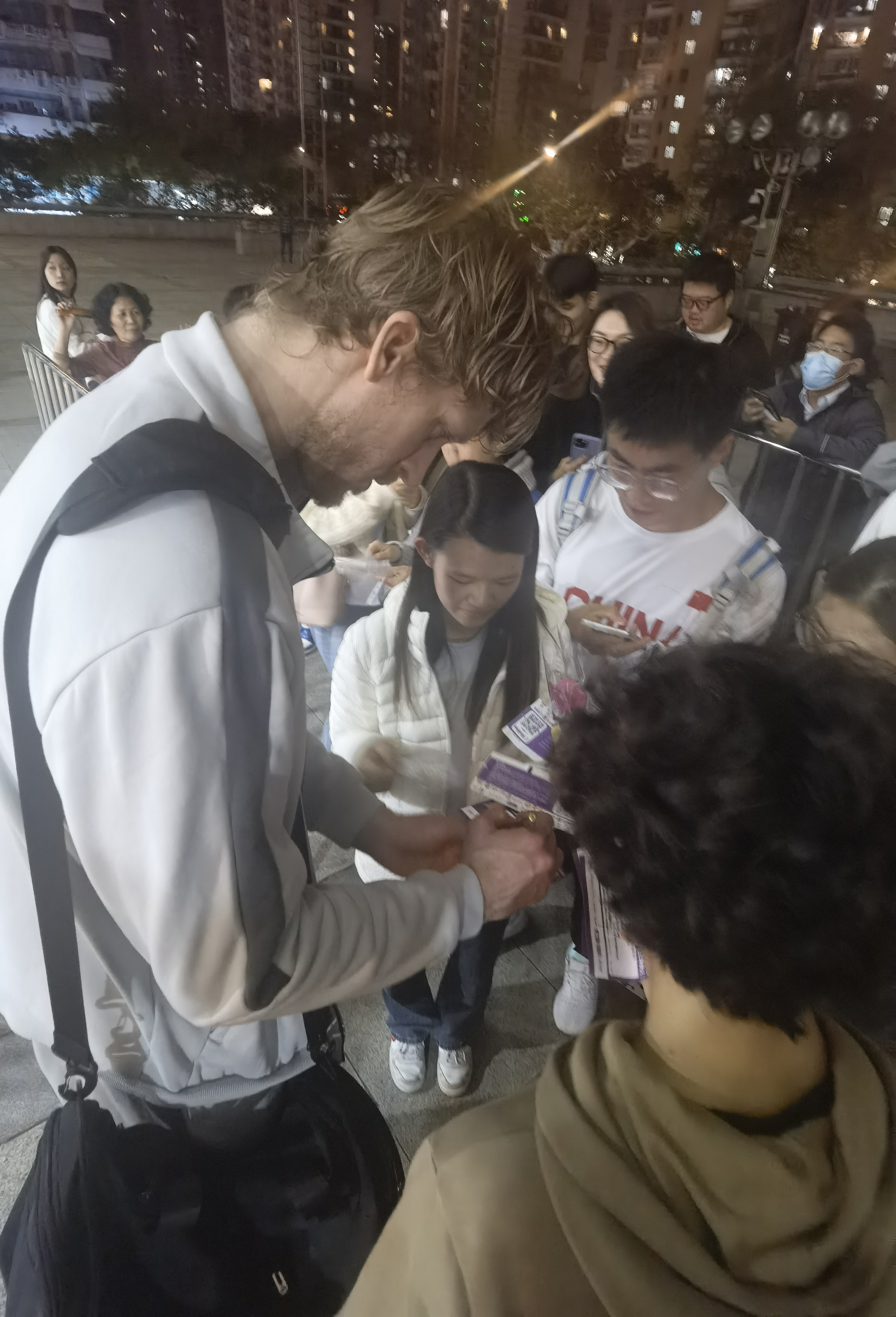 霍尔特走出卢湾体育馆的球员出口,等待许久的上海本地球迷迅速拥上前,送上准备好的签字笔、照片等。面对球迷的签名、合影要求,霍尔特一一满足。记者曾多次在光彩体育馆见到球迷专程来看霍尔特的比赛。没想到,这位北汽男排的外援在客场也拥有如此人气。也难怪,这种集实力、样貌、精神力于一身的球员的确拥有很强的个人魅力。