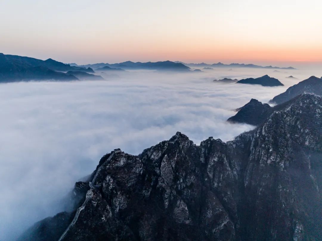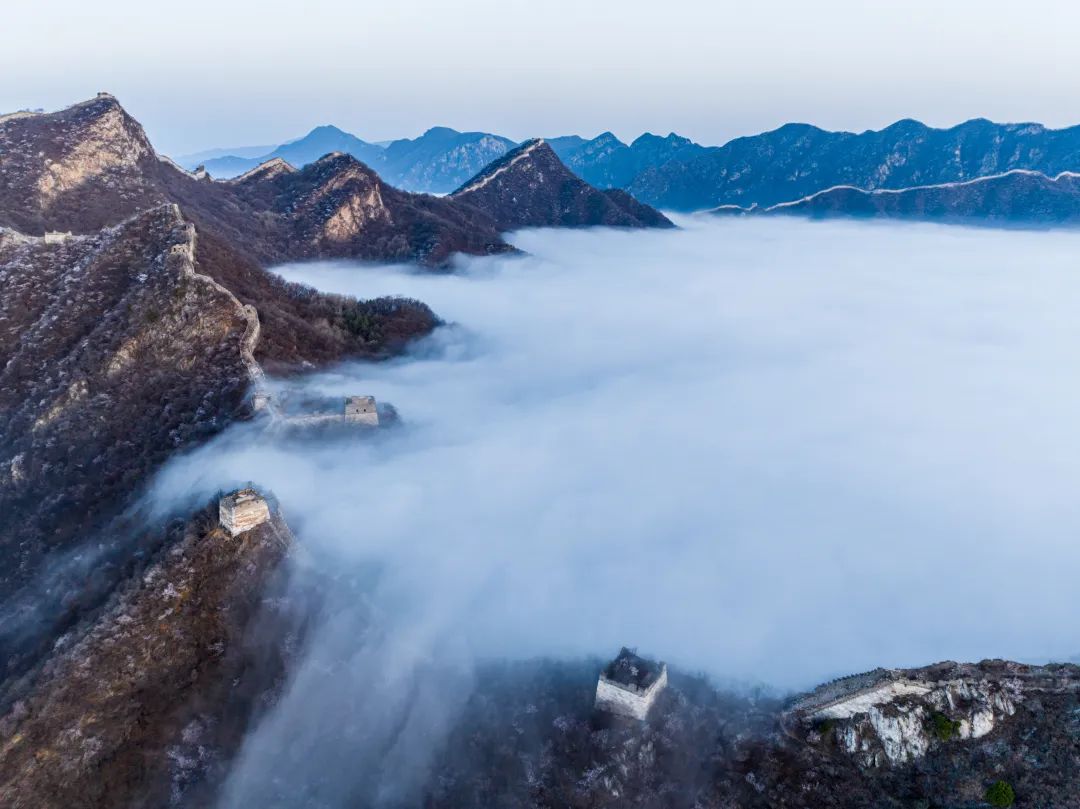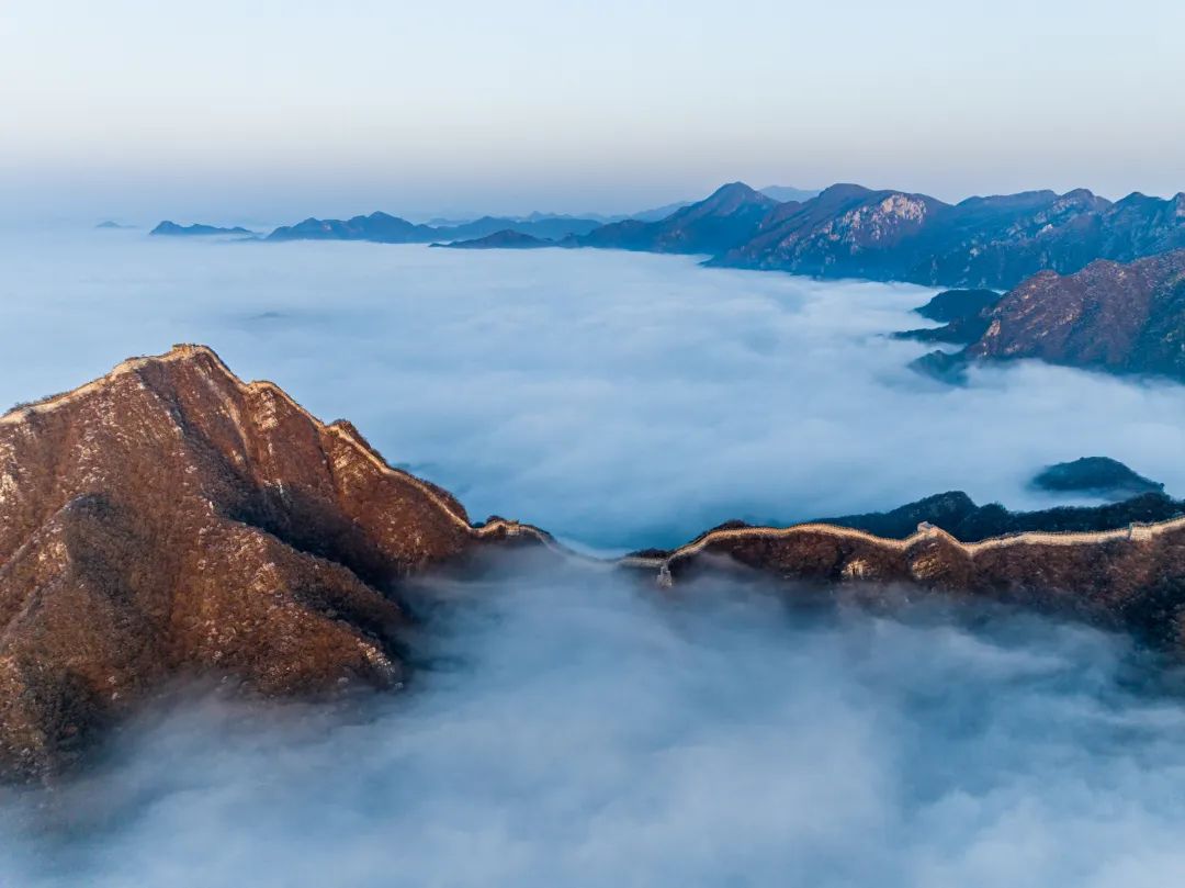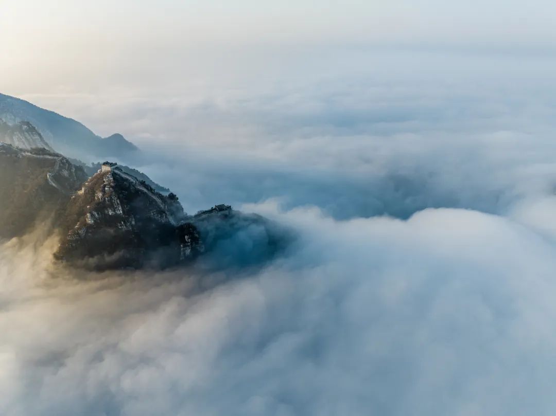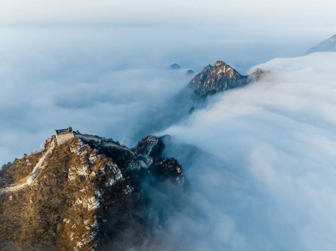 一场春雨过后,怀柔还出现了云海景观。莽莽群山在云海之中若隐若现,以险峻著称的箭扣长城被云海包围,仿佛人间仙境。