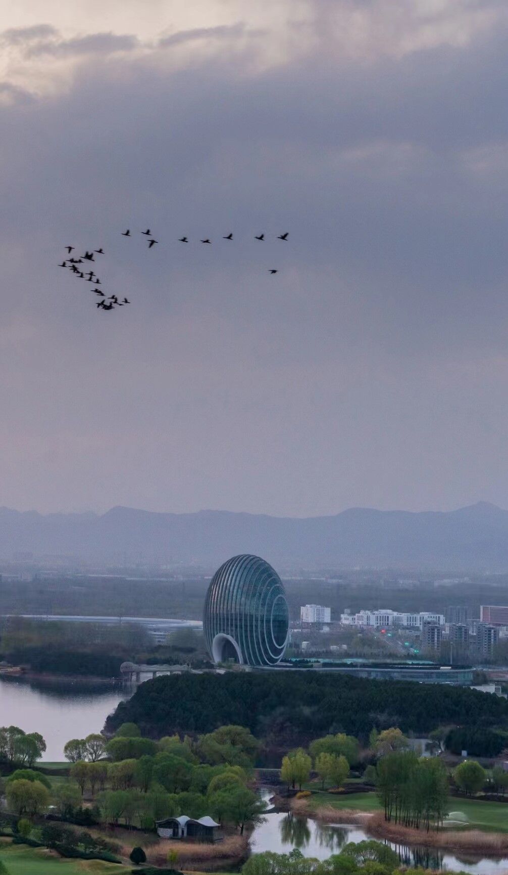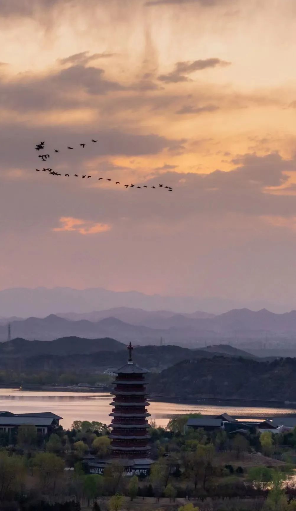 四月的雁栖湖又进入了一年中最美的时候,绿意盎然的大片湿地、雁栖塔倒映在波光粼粼的湖面上,在雁阵的“加持”下,更为雁栖湖春景增添了几分诗情画意。