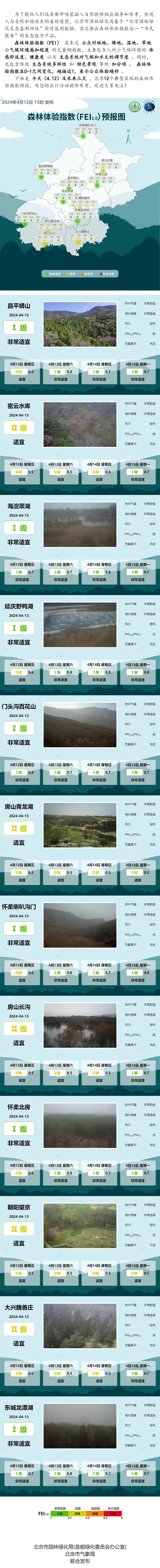 今天及未来三天北京12个典型区域的森林体验指数预报,为您的出行活动提供参考,欢迎关注!