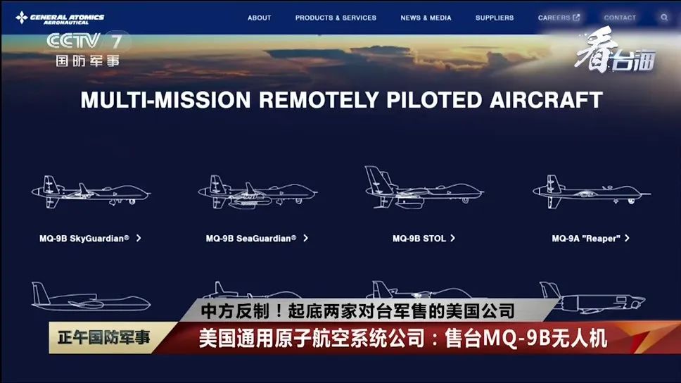 外交部日前宣布,对参与向中国台湾地区出售武器的美国通用原子航空系统公司、通用动力陆地系统公司等企业采取反制措施,包括:冻结在我国境内的动产、不动产和其他各类财产;对高级管理人员不予签发签证、不准入境。据媒体披露,两家美国企业分别对台出售MQ-9B天空卫士无人机及M1A2T主战坦克。