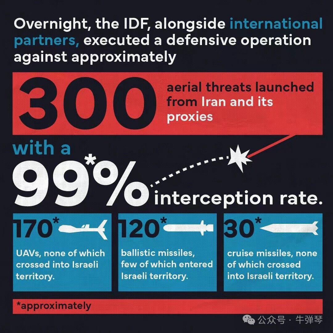我看了一张以色列军方发布的统计图片,声称99%的伊朗导弹和无人机都被成功拦截。
