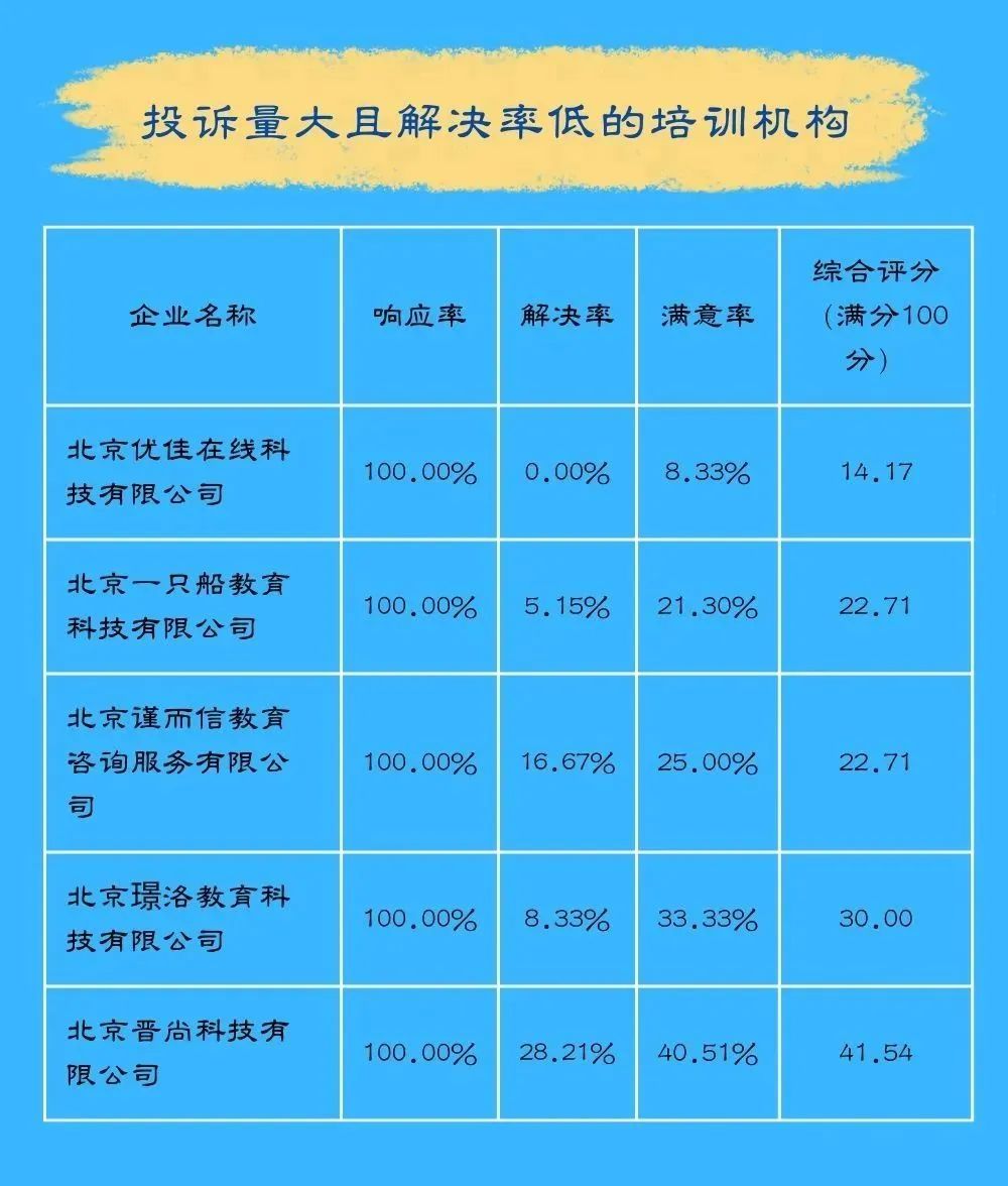 投诉量大且解决效率低的培训机构