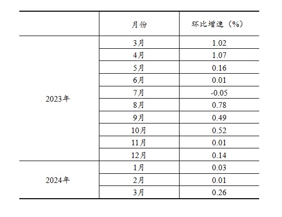 根据季节调整模型自动修正的结果,对2023年3月份以来的社会消费品零售总额环比增速进行修订。修订结果及2024年3月份环比数据如下: