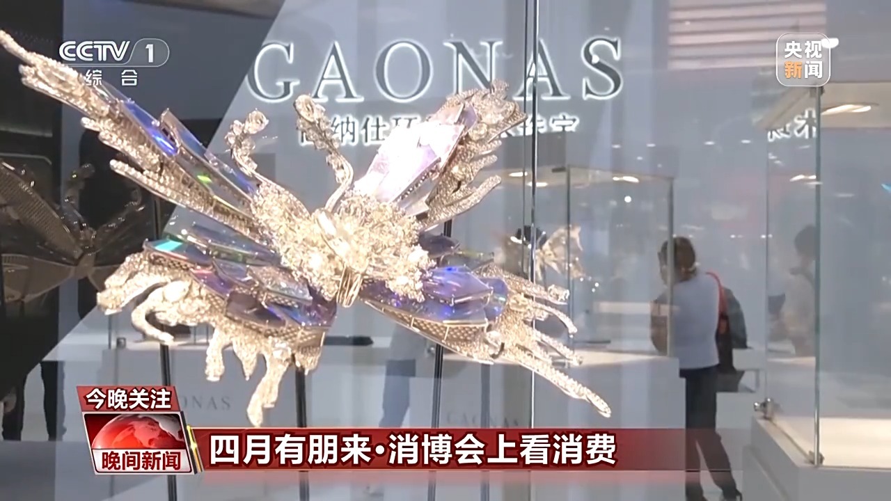在这个珠宝艺术品的展台,8只由AI设计的蝴蝶翩翩起舞,为观众带来了新奇的体验,也展示了科技在珠宝设计中的无限可能。
