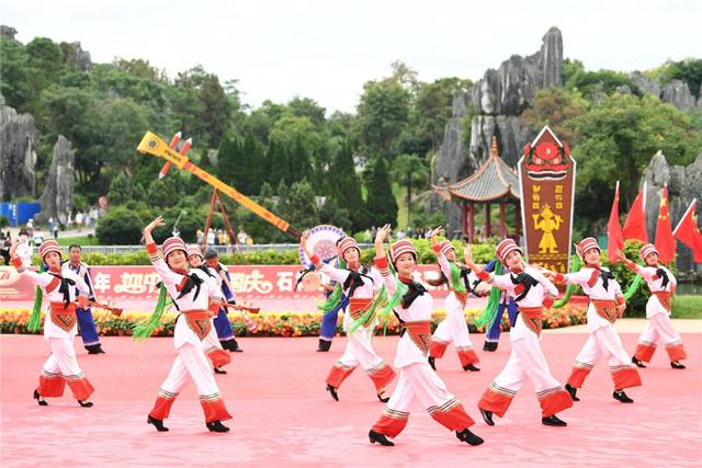 “五一”期间,石林风景区为游客备下丰富的文化演艺活动。天然舞场开展非遗文化展示及互动活动,游客可现场学跳大三弦,体验撒尼民俗文化。日月广场举办非遗文化歌舞展演,不仅能观赏原生态民族歌舞,更有猜彝族新娘等趣味互动活动,与阿黑阿诗玛一起共舞狂欢。