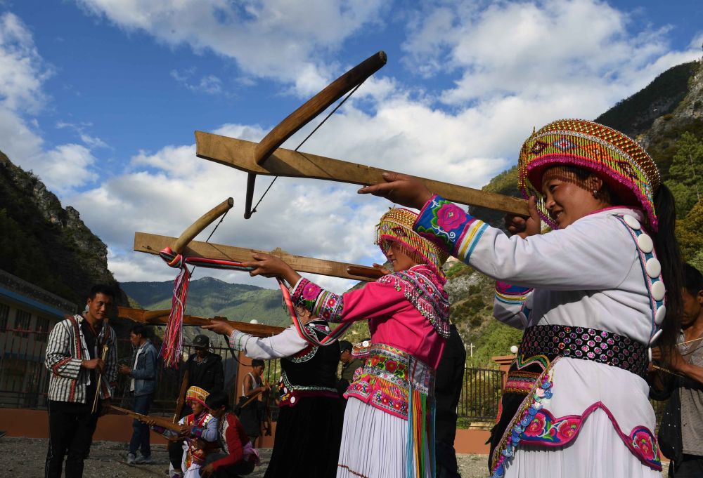 资料图:2018年6月21日,云南省迪庆藏族自治州德钦县霞若乡施坝村的傈僳族妇女在射弩比赛中。新华社记者 杨宗友 摄