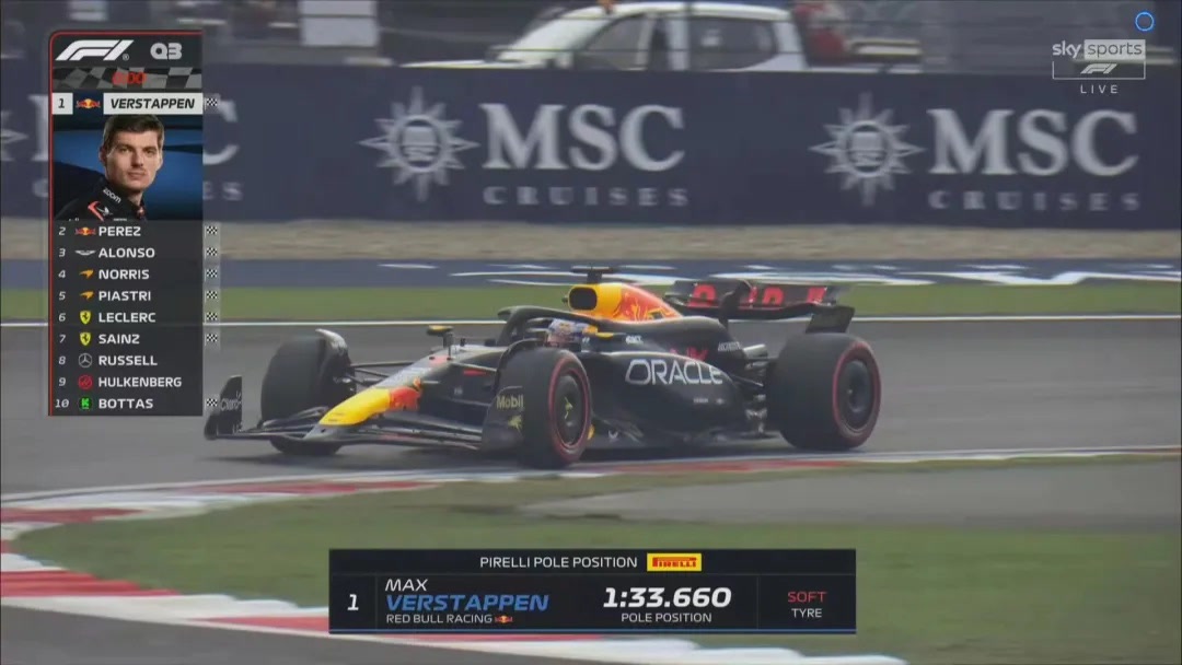在下午的排位赛中,周冠宇排名第16位,止步于排位赛第一节。他距离第15位的佩雷兹只差了0.048秒,只差这一位次就能晋级排位赛第二节。经过三节的比拼,维斯塔潘以1分33秒66的成绩获得正赛杆位。周冠宇表示在正赛中一定会用成绩单来弥补排位赛的损失。他相信车迷也能感受到,中国赛车正在崛起。