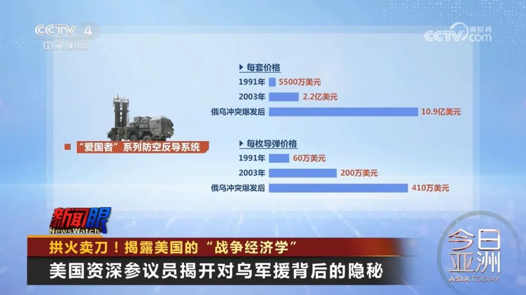 当然还有更离谱的,美国“爱国者”系列防空反导系统,1991年价格为每套5500万美元,每枚导弹60万美元;到2003年时,每套2.2亿美元,每枚导弹200万美元;俄乌冲突爆发后,又跳涨到每套10.9亿美元,每枚导弹410万美元。