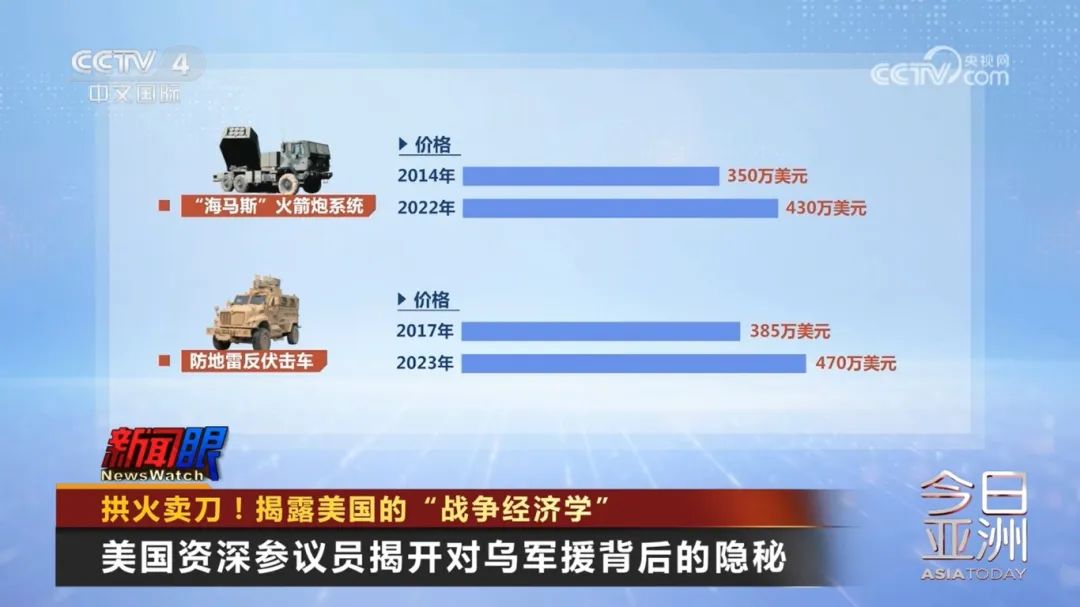 155毫米的M777牵引式榴弹炮,2008年报价200万美元,等到2023年时高达400万美元;“海马斯”火箭炮系统,2014年是350万美元,2022年是430万美元;防地雷反伏击车在美国反恐战争结束之后已经被美军遗弃,但提供给乌克兰时单价不减反增,从2017年的385万美元增加到470万美元。