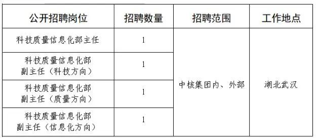 公司高度重视干部队伍建设,根据工作需要,现面向中核集团内外部公开招聘总部科技质量信息化部正副职。