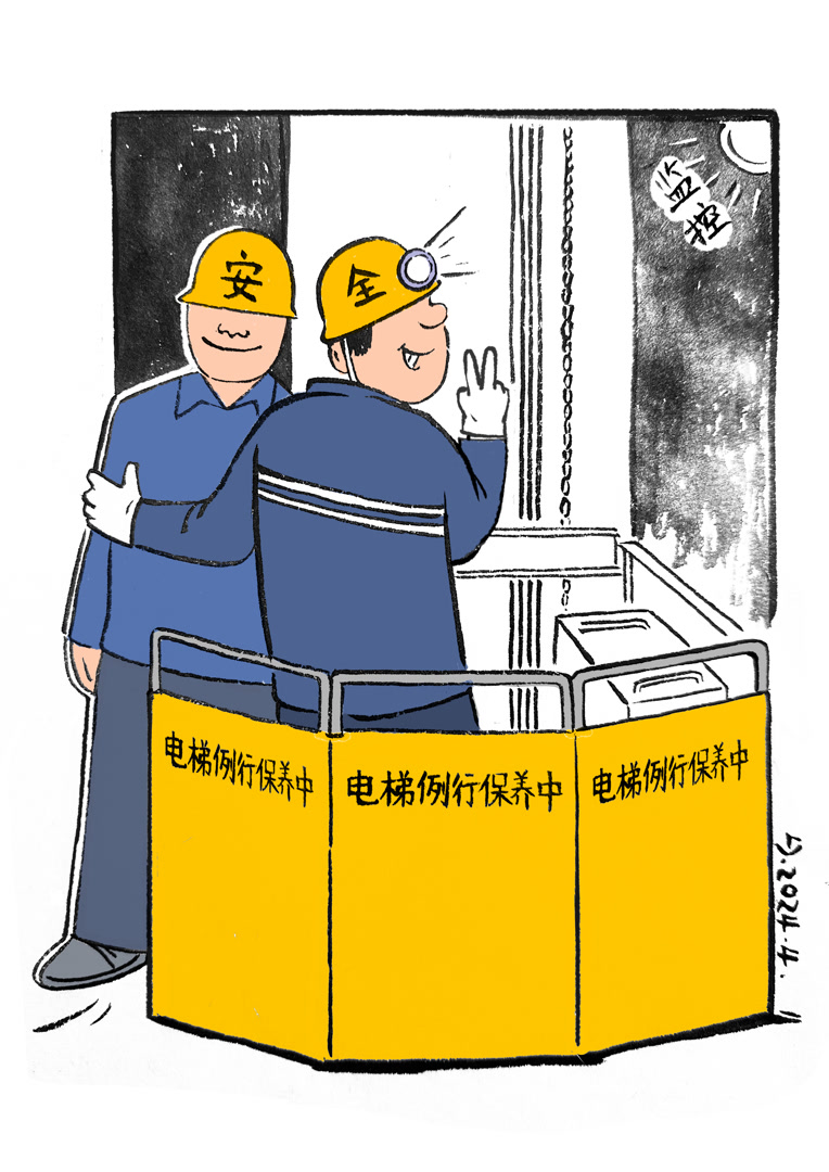 近日,厦门湖里区执法人员对某医院一台电梯维保情况开展日常监督检查时,发现本应两人维保电梯,其中一人竟是“纸片人”。用假的人形立牌代替其中一名作业人员,放在轿顶拍照上传,企图蒙混过关。电梯承载百姓安危,纸糊的安全要不得。