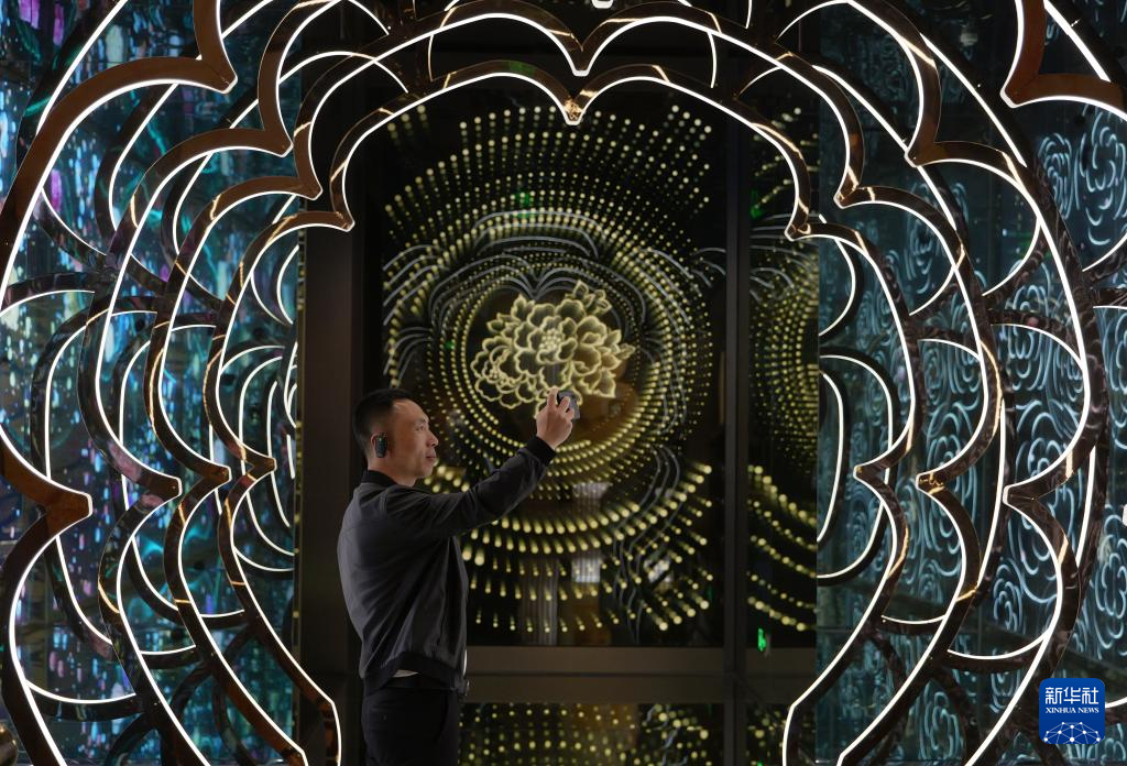 4月16日,这是在洛阳牡丹阁拍摄的牡丹琉璃墙。新华社记者 李安 摄