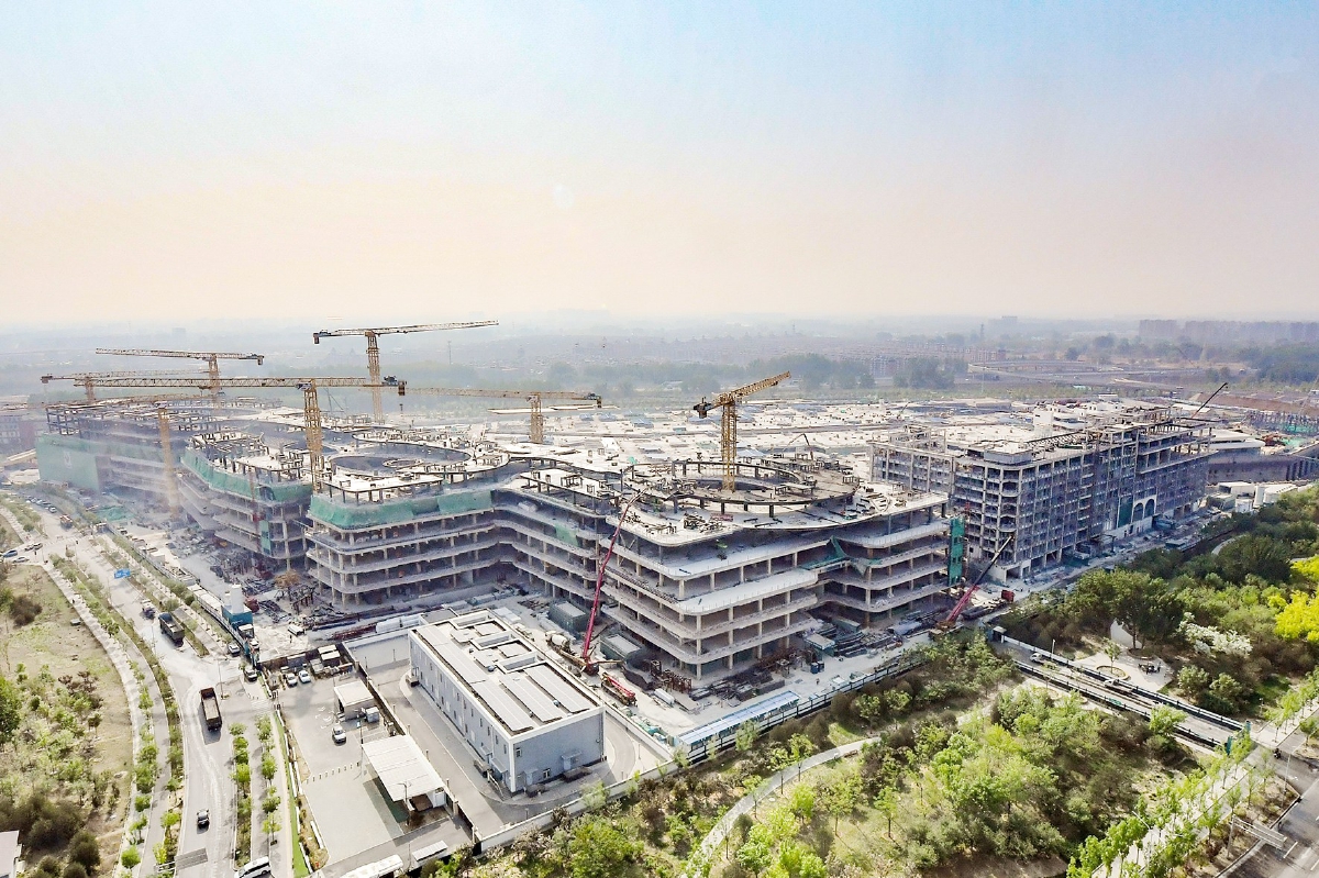 北京最大奥莱商业综合体实现主体结构封顶。记者 常鸣/摄