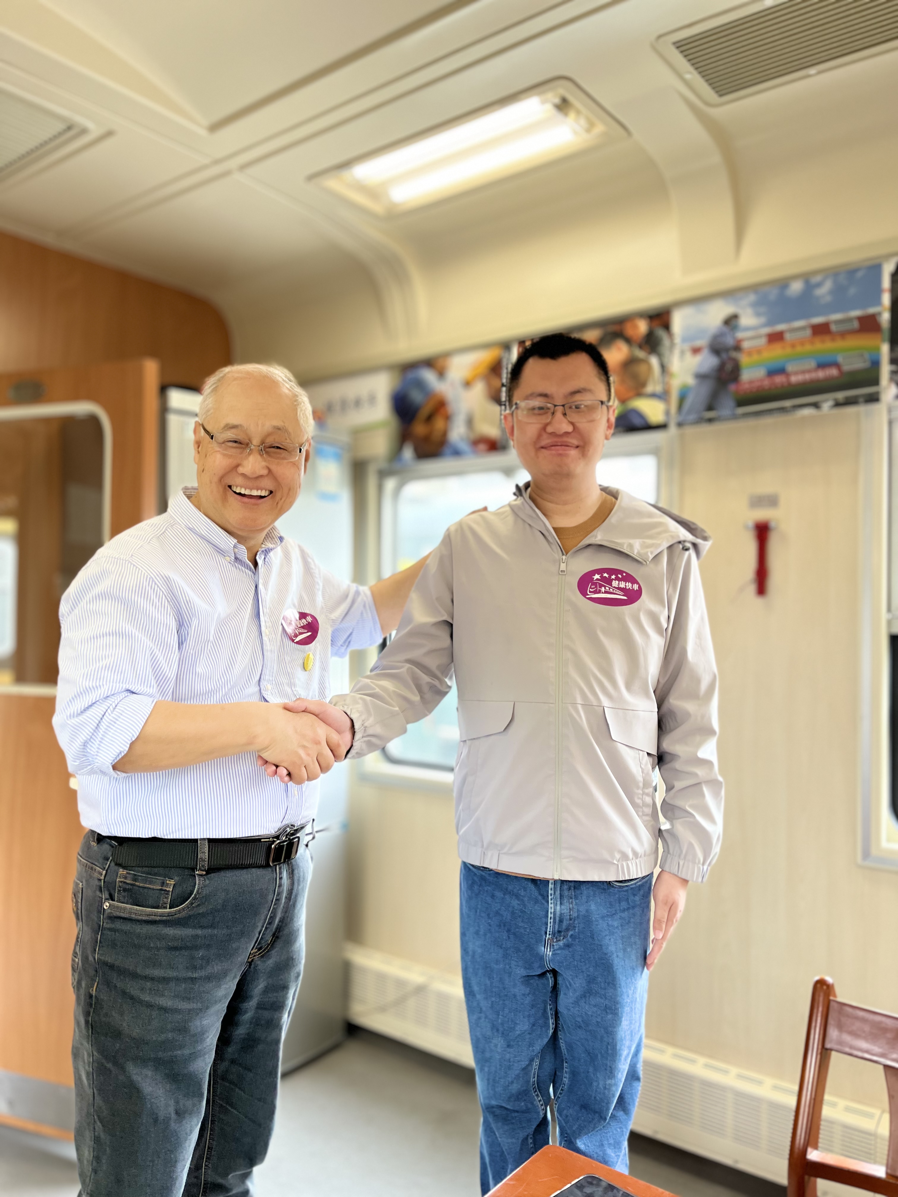 “咔嗒”“咔嗒”,伴着火车行进的声音,李东岩背手靠窗挺拔而立,神采奕奕。这位“健康快车”的车长,跟随列车从北京出发,正奔赴一场“光明之旅”。