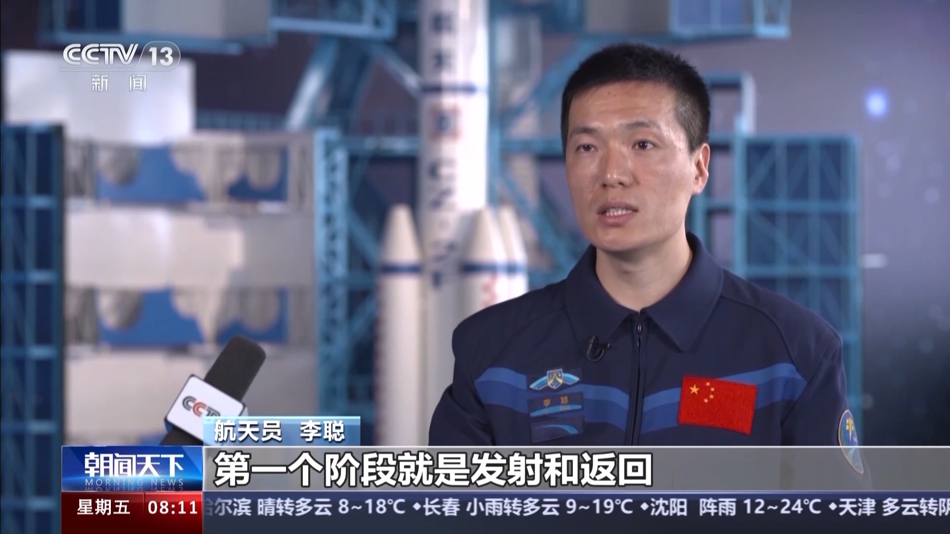 航天员李聪:我们分两个阶段,第一个阶段就是发射和返回。第二个阶段是在空间站任务的阶段,这个阶段初步我们定的是01抓总体;空间试实验和一些健康维护的操作训练,我来主抓;03是站务的维护、物资的管理。