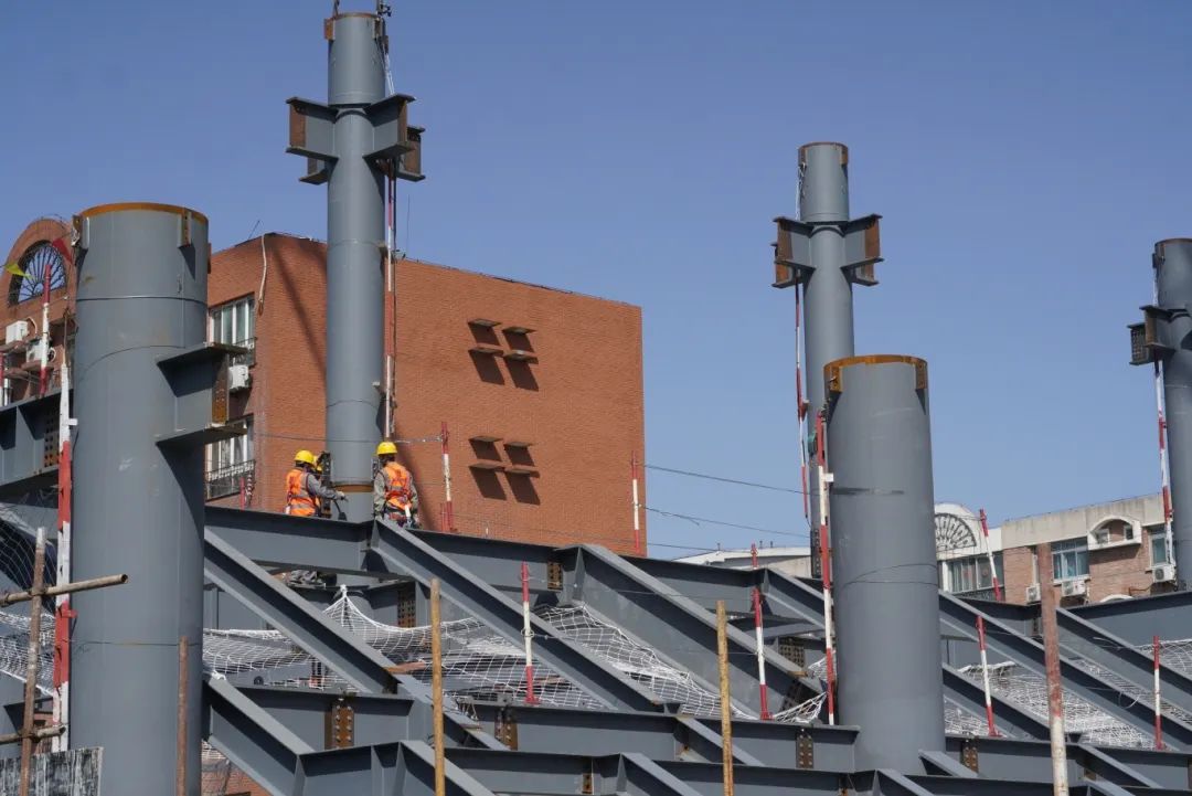 走进位于建安街北侧的亦城书院项目工地,斜对面一座由钢材料搭建的楼梯“骨架”已初见雏形,未来,这里将成为一层大厅通往二层阅读空间最便捷的通道。“下降,好,停下。”现场,塔吊正吊起一根钢梁,在两根横梁之间稳稳停住,随后由工人在两端进行固定,整个流程一气呵成、高效有序。“钢梁长度最长可达33.6米,钢管柱最粗直径可达1.2米,因施工场地有限,在吊装、安装方面存在一定难度。”据土地储备与建设服务中心(以下简称“土储建设中心”)项目负责人介绍,建设过程中,部分空间结构变化大以及屈曲约束支撑体系安装新工艺的采用等,也都对工程建设提出了更高的要求。