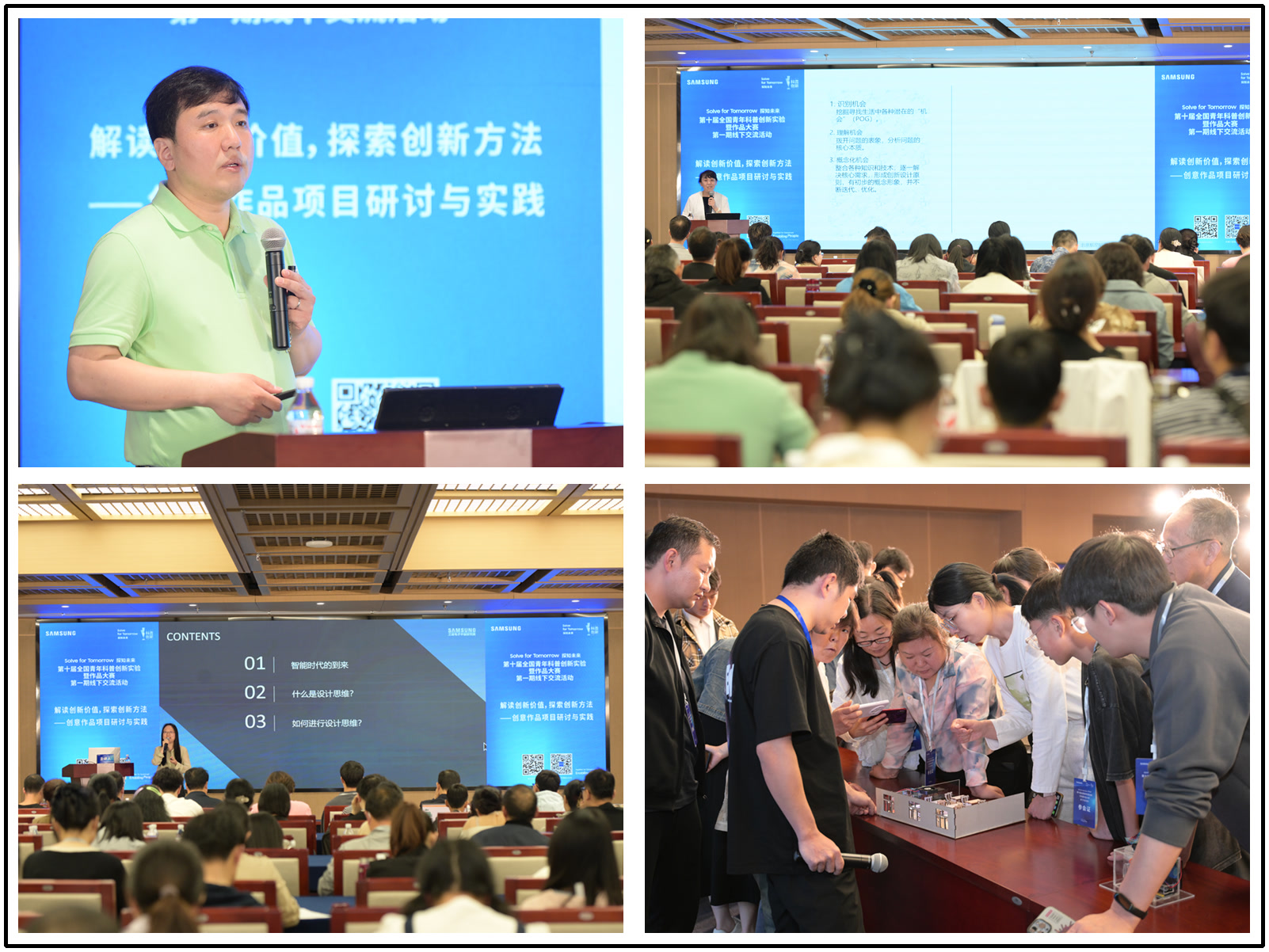 活动中,北京理工大学教授杨毅分享了创意作品项目“未来校园”选题思路及参考案例,结合大赛宗旨对创新目标和考核标准进行了解析。北京航空航天大学教授杨光从设计角度分享了实现创新的思路和方法,帮助教师提升创意作品的辅导水平。三星电子中国研究院首席技术专家涂眉开展了设计思维应用实践活动,带领教师了解如何在从发现问题到解决问题的全过程中,应用设计思维提出命题解决方案。机械工业出版社副编审徐强也组织开展了实践活动,他围绕创意作品项目“未来校园”主题的软硬件交互装置相关知识要素、应用技能等,让教师参与体会如何利用开源软硬件实现创新。