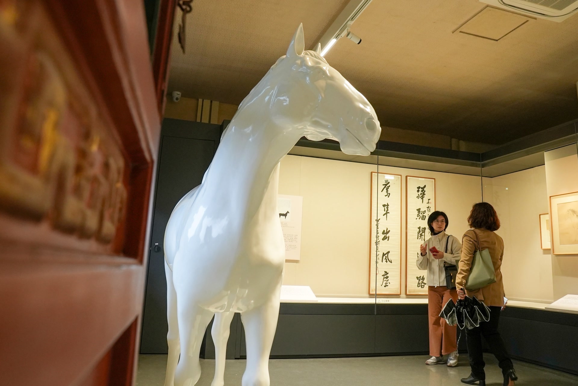 众多过程稿中,马出镜最多。专家说,溥心畬写生性画稿的目标是实现对马形象规律的整体把握,不是单纯记录某个形态,而是力求做到“胸中有马”。展厅里,溥心畬临唐《照夜白图》、宋《游骑图卷》、清郎世宁《百骏图》等与马相关的作品也悉数亮相。恭博还专门利用3D建模技术,还原出一匹画中白马。