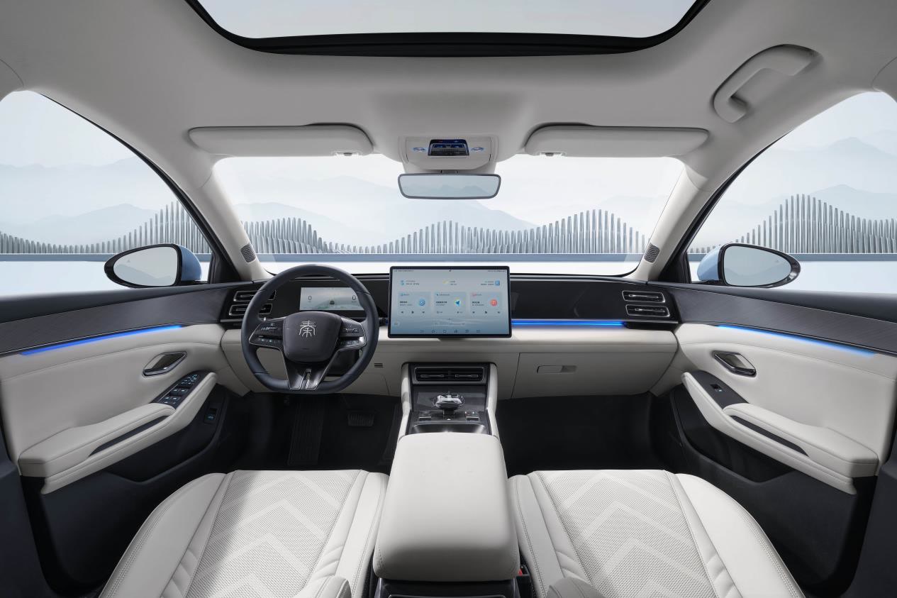 比亚迪秦L内饰以中国画为灵感,打造出格调高逸的“山水画境座舱”。一体式中控台以旋转大屏为中心徐徐展开,营造出很强的环抱感。配合更宽敞的空间、考究的用料,符合人体工程学的宽舒云感座椅,以及前麦弗逊后多连杆独立悬架,秦L能带来更加出色的驾乘体验。