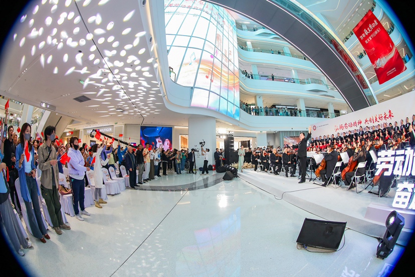 5月1日,由北京市海淀区文化和旅游局主办、北京市海淀区文化馆承办的2024年海淀区致敬最美劳动者交响合唱音乐会在五棵松万达广场上演,来自各行各业的劳动者们用豪迈的声音为广大劳动者送上真挚的节日祝福。
