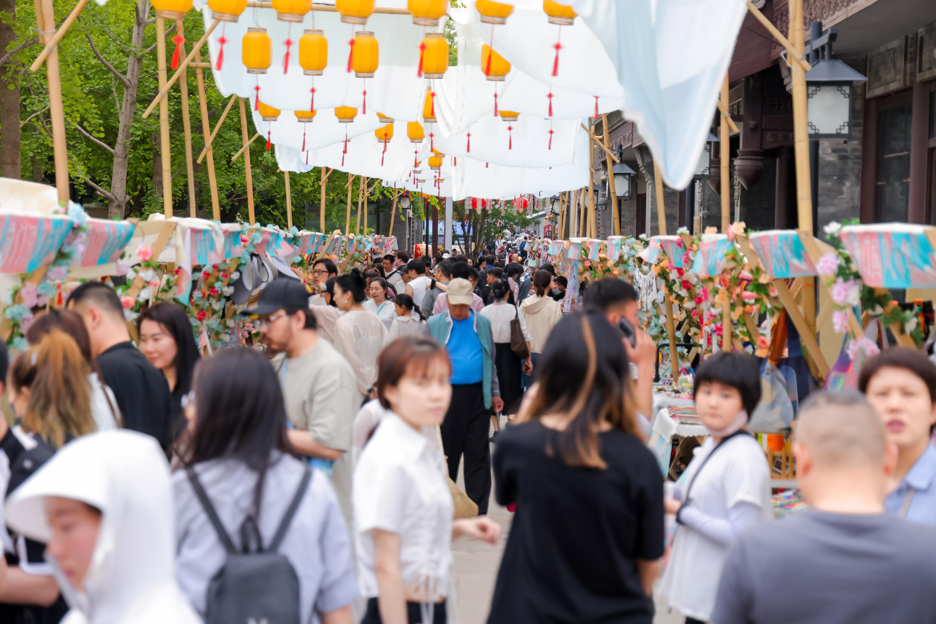 5月1日至5日假日期间将设置为游客提供拍照留念的网红打卡装置、邀请游客与国风NPC互动游戏、不定时街拍“路人爆改”等游戏环节,让游客身临其境地体验中国传统文化的魅力,精心设计的活动环节将为游客带来全方位、多层次的国风体验。