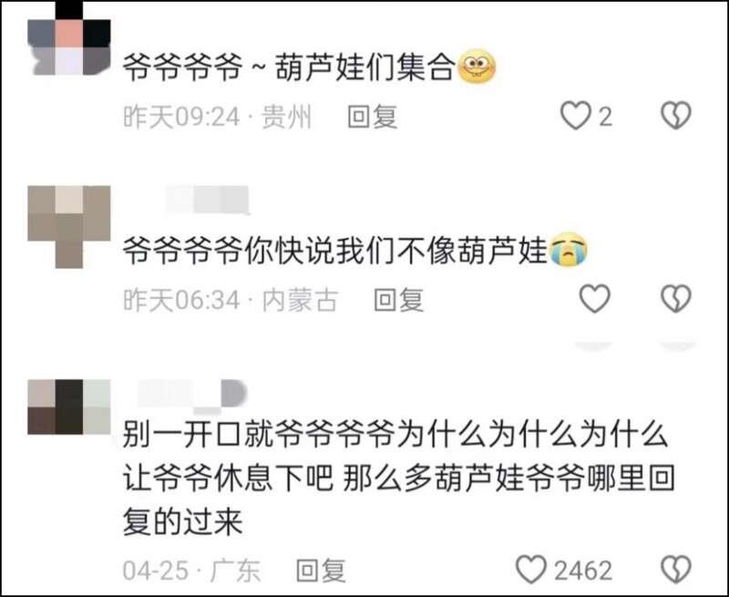 这些留言开头都是“爷爷爷爷”
