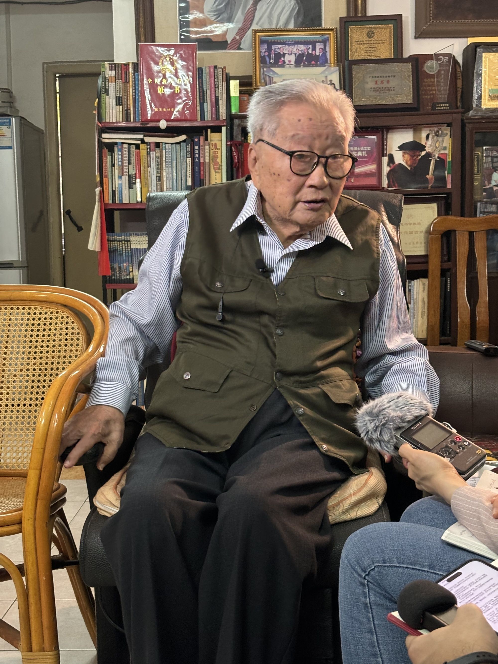 如今,夏书章每天还会花时间翻阅最新的报纸、看电视上当天的新闻。夏书章把自己的“长寿秘诀”概括为“作息有序、饮食有度、生活有趣”,我们问他生活的趣是什么,夏老反问,“生活都没趣味,活着干什么呢?”