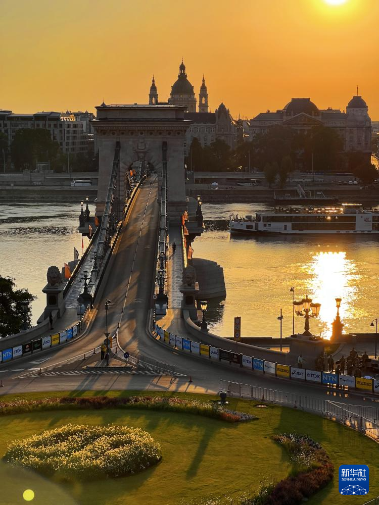 匈牙利布达佩斯的链子桥晨景(2023年8月27日摄)。新华社记者 孟鼎博 摄