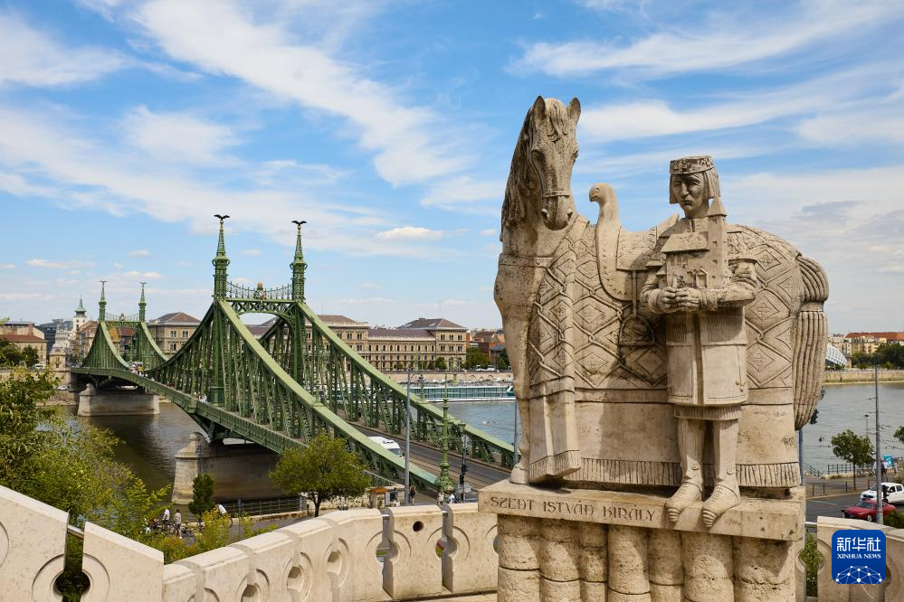 匈牙利布达佩斯的伊什特万一世雕像和自由桥(2022年6月23日摄)。新华社记者 孟鼎博 摄