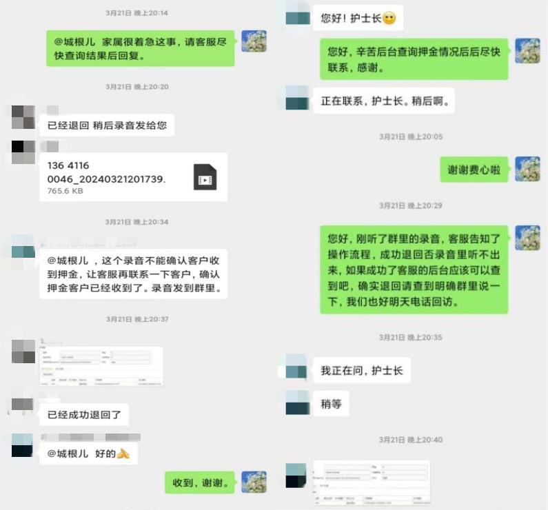 近日,北京市丰台中西医结合医院接诉即办专班接到转来的一条市民12345热线诉求,表示“使用自助轮椅还回时退款未到账,希望解决问题”。接到该市民诉求后,医院接诉即办专班就情况立刻在每日调度群进行分析研判: