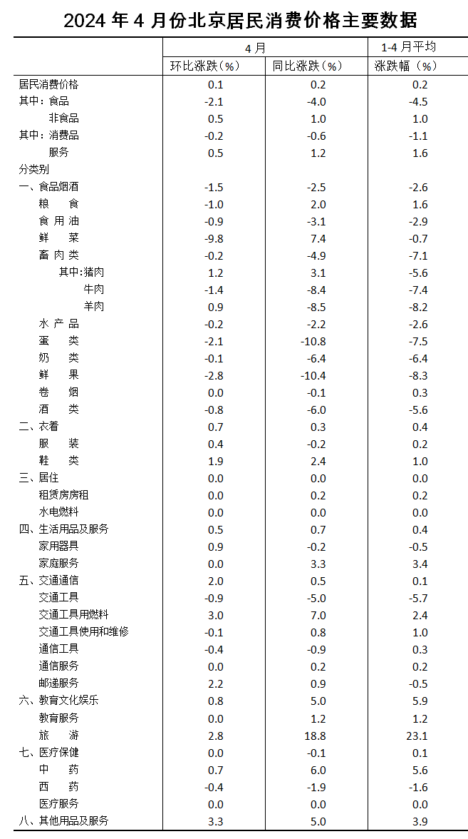 2024年4月份北京居民消费价格变动情况