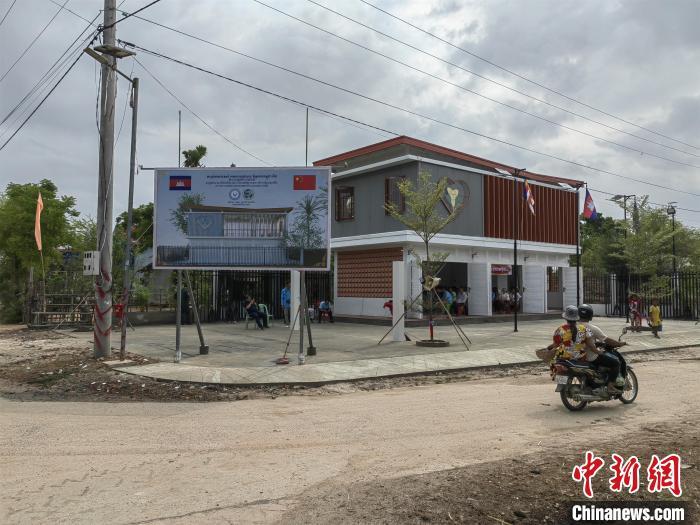 当地时间5月12日,新落成的中柬友好扶贫示范村村民中心。 中新社记者 杨强 摄