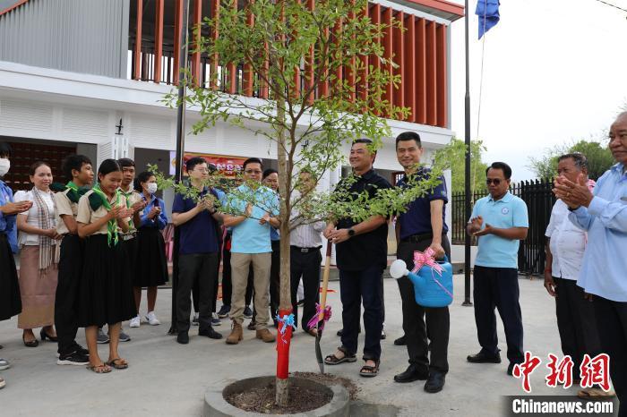 当地时间5月12日,在距离金边以南约60公里的一个拥有125户家庭、500余人口的小乡村,柬埔寨民间社会组织联盟论坛主席盖里维希挥铲添泥,中国和平发展基金会驻柬埔寨办事处主任刘战国提壶浇水,合力种植下一棵象征着中柬友谊的隆都花树。