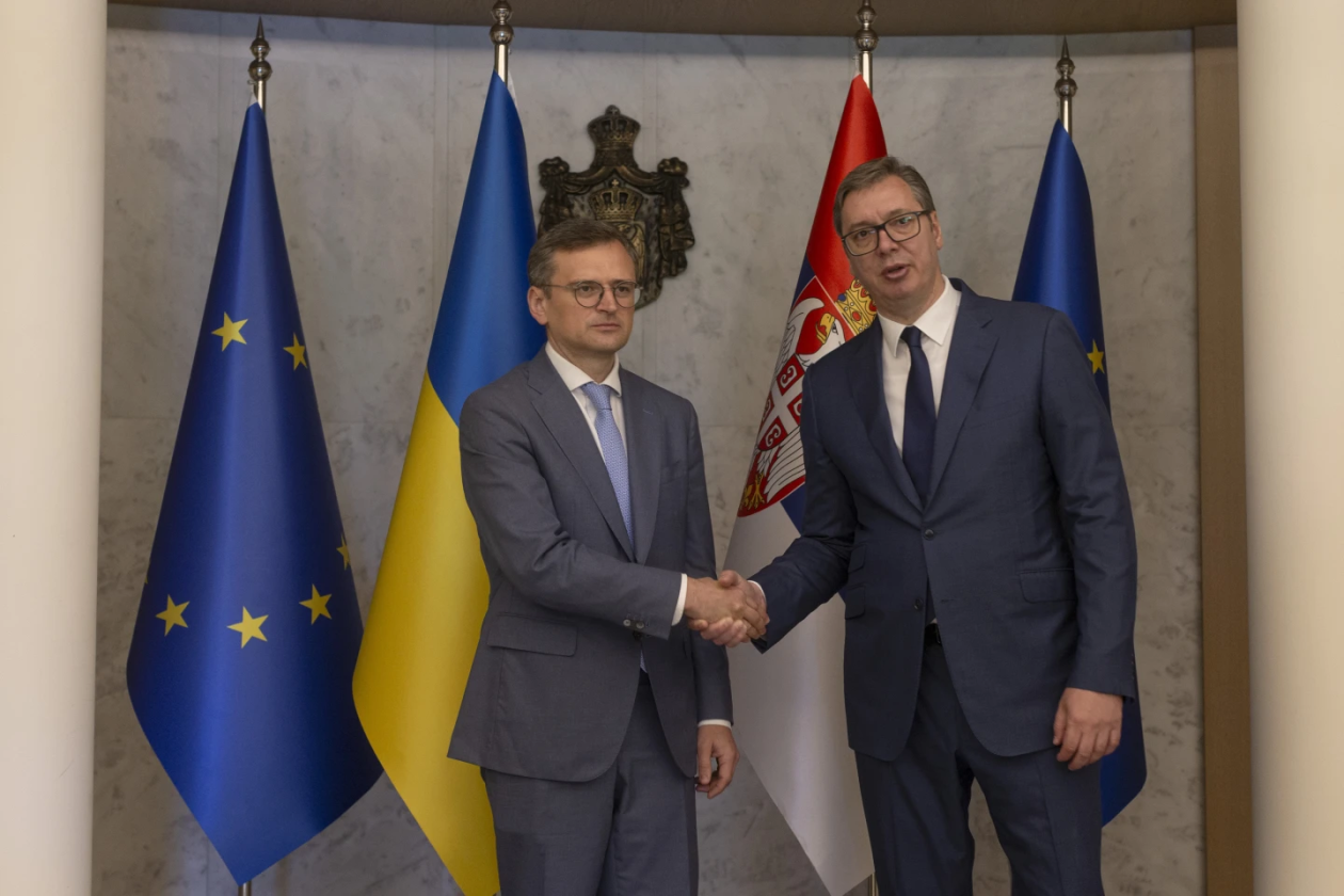 当地时间13日,塞尔维亚总统武契奇与到访的乌克兰外长库列巴举行会晤。图自外媒