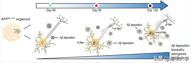 图1.人源性类脑器官模型在时间维度依次呈现AD关键病理特征