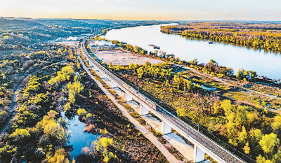 匈塞铁路贝诺段,火车在多瑙河畔疾驰。刘瑜欣摄