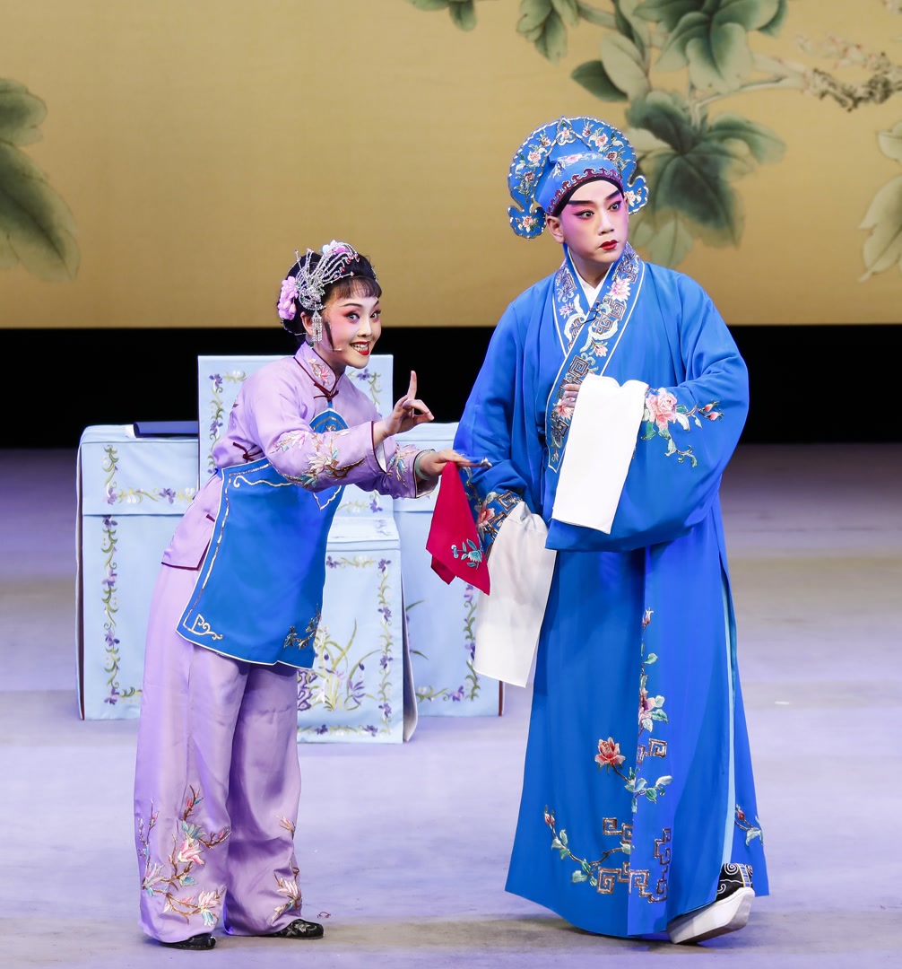 在演出当晚,舞台上呈现出的华丽景象着实令现场的观众耳目一新,处处浸透出浓厚的文化气息,张扬着现代美学的神韵。天幕上象征着吉祥富贵的各色牡丹花朵、二道幕上工笔彩绘的精美新鲜花样、讲究考致的一桌二椅,辅之绚丽多彩、层次错落的灯光,营造出唯美精致、意味悠扬的舞台艺术效果。更令人称道的是导演在二道幕和屏风运用上的大胆创新,使舞台区域划分和转场衔接更加清晰流畅,为演员提供了更加自如开阔的表演空间。2024版《花为媒》的服装在继承传统的基础上注重与人物形象的贴合度,既华美讲究做工精致,又使人物形象更加鲜活生动。在人物造型上,以突出人物个性和身份为基调,精心设计了多款华美的头饰,给观众带来似曾相识,又富有新意的艺术体验。尤其是主要人物张五可的头饰,以电影版为依据,精心设计了“鸾”的造型,光芒闪烁熠熠生辉。该剧的音乐、唱腔设计虽严格遵循《花为媒》的艺术风貌,但也揉入了新的音乐元素,配器丰富多样,让观众听来非但没有违和感,反而更加清新流畅、明快悦耳,全面提升了该剧的音乐感染力。还有更值得一提的是,为做到电影版与舞台版的高效融合,尽可能保留不同艺术表现形式的精华,主创团队一些场次的调度和细节的安排上做了适度的取舍和精心的调整。如增加了适合舞台表演的“车柳子”、保留了电影版的“玫瑰调”、去掉了“拜寿”中贾俊英的出场等,力求将该剧打造成新时代的精品力作,呈现出国家级剧院的艺术水平。