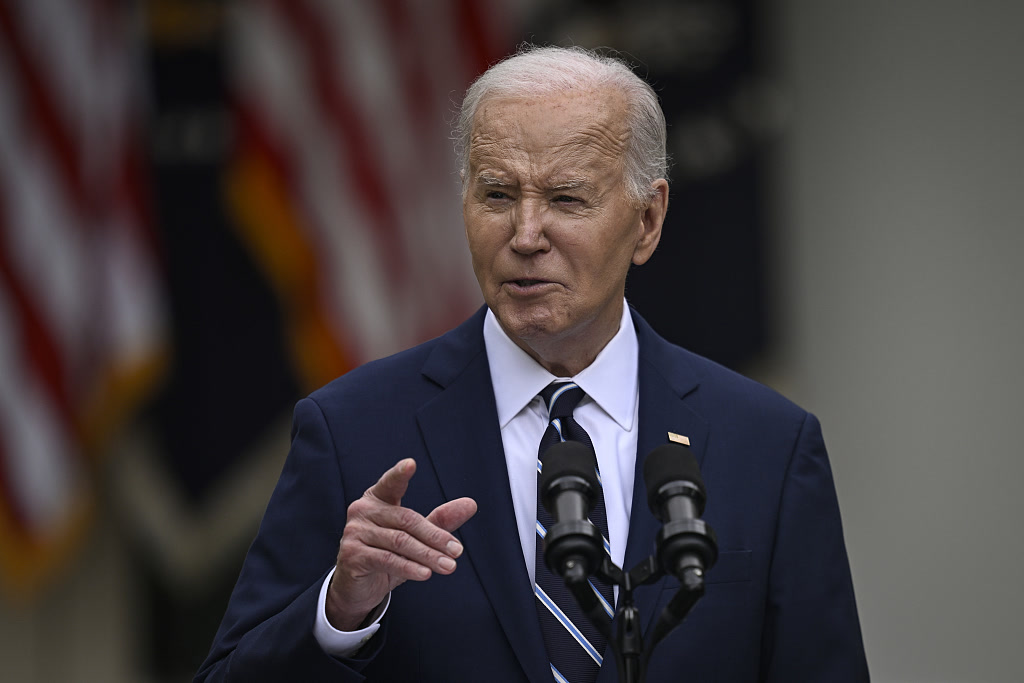 当地时间5月14日,美国总统拜登在白宫玫瑰园发表讲话。图源:视觉中国