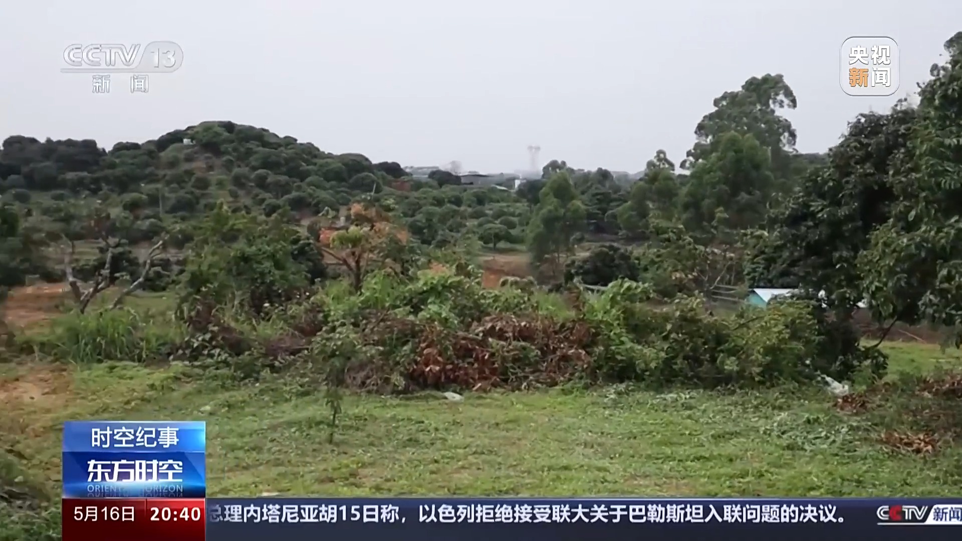 廖美敬所处的这个荔枝果园,面积超过了600亩,虽然这些果树还在坐果期,但光是凭这些稀疏的枝条,大量被雨水、冰雹打落在地的残枝枯叶,就能让人提前推断出今年荔枝收成的情况。按廖美敬的说法,预计今年这里的产量要比去年减少6成。